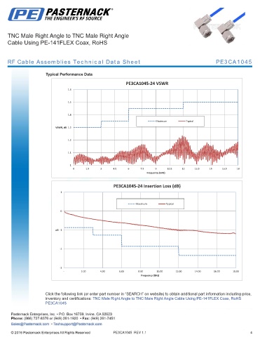 RF Cable Assemblies Technical Data Sheet PE3CA1045