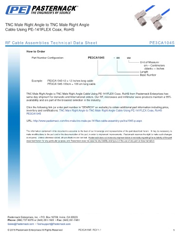 RF Cable Assemblies Technical Data Sheet PE3CA1045