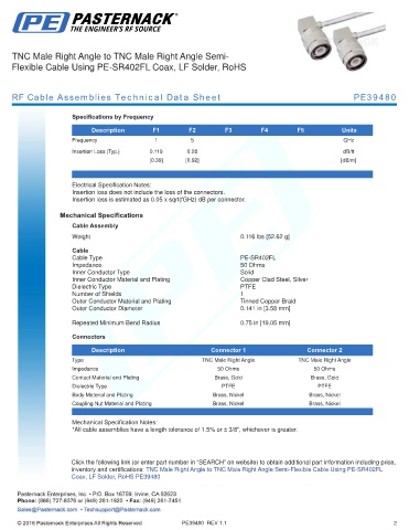 RF Cable Assemblies Technical Data Sheet PE39480