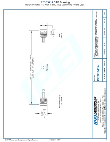 PE3C3414 CAD Drawing Reverse Polarity TNC Male to BNC Male Cable Using RG316 Coax PE3C3414 REV 4