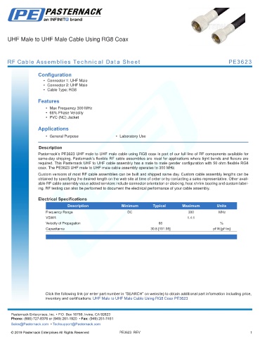 RF Cable Assemblies Technical Data Sheet PE3623