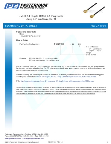 inventory and certifications: UMCX 2.1 Plug to UMCX 2.1 Plug Cable Using 0.81mm Coax, RoHS PE3CA1056