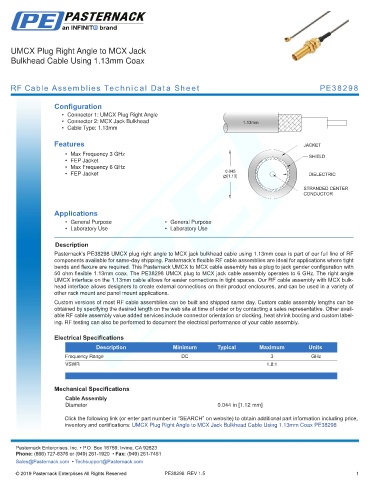 any representation or warranty regarding the suitability of the part described herein for any particular purpose, and Pasternack does not assume any liability arising out of the use of any part or documentation.