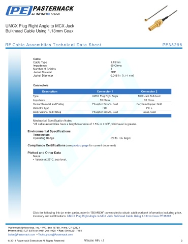 RF Cable Assemblies Technical Data Sheet PE38298
