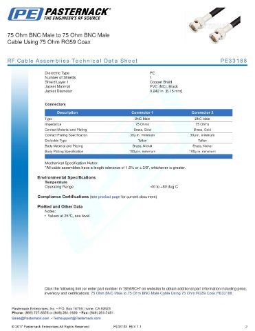 inventory and certifications: 75 Ohm BNC Male to 75 Ohm BNC Male Cable Using 75 Ohm RG59 Coax PE33188