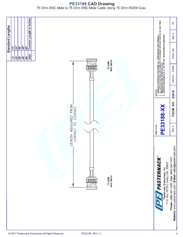 PE33188 CAD Drawing 75 Ohm BNC Male to 75 Ohm BNC Male Cable Using 75 Ohm RG59 Coax PE33188 REV 1.1 4