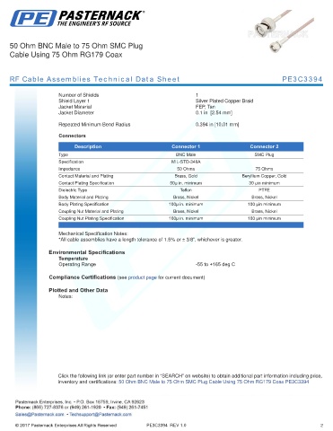 RF Cable Assemblies Technical Data Sheet PE3C3394
