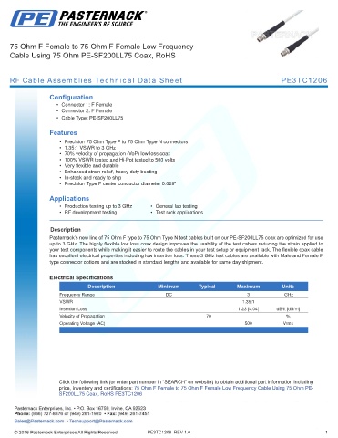 RF Cable Assemblies Technical Data Sheet PE3TC1206