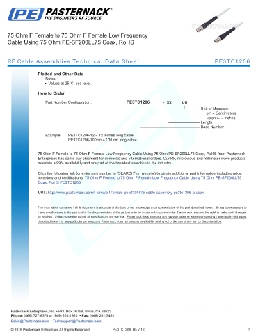 RF Cable Assemblies Technical Data Sheet PE3TC1206