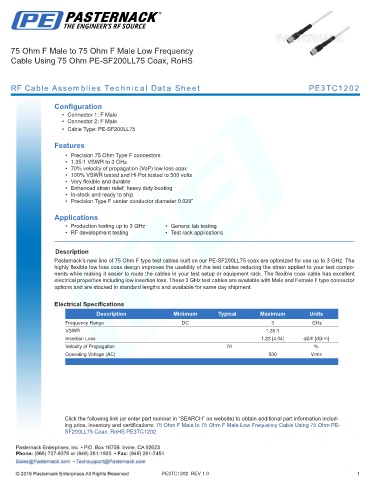 RF Cable Assemblies Technical Data Sheet PE3TC1202