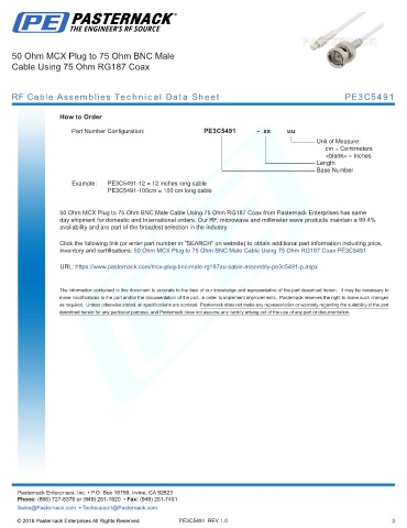 RF Cable Assemblies Technical Data Sheet PE3C5491