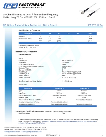 RF Cable Assemblies Technical Data Sheet PE3TC1204