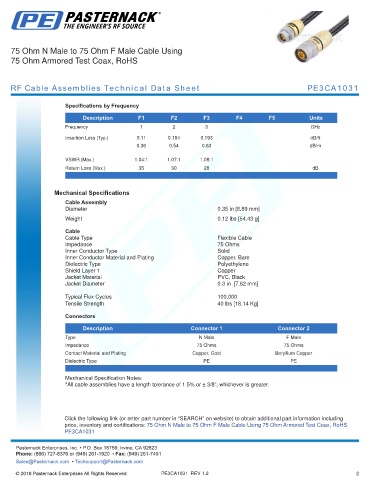 RF Cable Assemblies Technical Data Sheet PE3CA1031