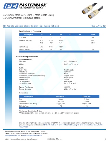 RF Cable Assemblies Technical Data Sheet PE3CA1032