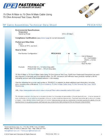 any representation or warranty regarding the suitability of the part described herein for any particular purpose, and Pasternack does not assume any liability arising out of the use of any part or documentation.