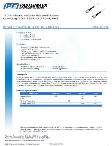 RF Cable Assemblies Technical Data Sheet PE3TC1200