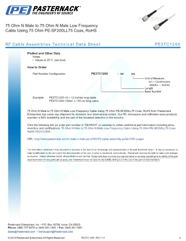 RF Cable Assemblies Technical Data Sheet PE3TC1200