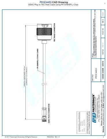 SSMC PLUG CONNECTOR STANDARD TOLERANCES *STANDARD TOLERANCES APPLY ONLY TO DIMENSIONS IN INCHES THE ENGINEER'S RF SOURCE Pasternack Enterprises, Inc. P.O. Box 16759 | Irvine | CA | 92623 Phone: (949) 261-1920 | Fax: (949) 261-7451 Website: www.pasternack.com | E-Mail: sales@pasternack.com
