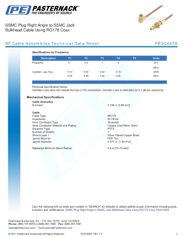 RF Cable Assemblies Technical Data Sheet PE3C4458