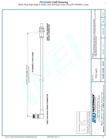 SSMC PLUG RIGHT ANGLE CONNECTOR STANDARD TOLERANCES *STANDARD TOLERANCES APPLY ONLY TO DIMENSIONS IN INCHES R THE ENGINEER'S RF SOURCE Pasternack Enterprises, Inc. P.O. Box 16759 | Irvine | CA | 92623 Phone: (949) 261-1920 | Fax: (949) 261-7451 Website: www.pasternack.com | E-Mail: sales@pasternack.com