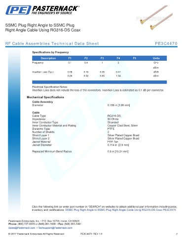 RF Cable Assemblies Technical Data Sheet PE3C4470