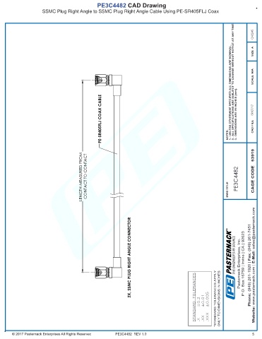PE-SR405FLJ COAX CABLE NOTES: 1. 2. DIMENSIONS ARE IN INCHES [mm]. 3. 09/07/17 CAD FILE