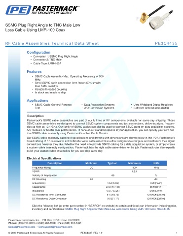RF Cable Assemblies Technical Data Sheet PE3C4435