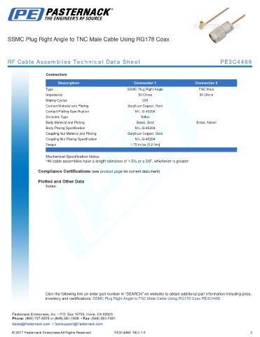RF Cable Assemblies Technical Data Sheet PE3C4468