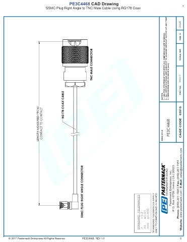 SSMC PLUG RIGHT ANGLE CONNECTOR STANDARD TOLERANCES *STANDARD TOLERANCES APPLY ONLY TO DIMENSIONS IN INCHES THE ENGINEER'S RF SOURCE Pasternack Enterprises, Inc. P.O. Box 16759 | Irvine | CA | 92623 Phone: (949) 261-1920 | Fax: (949) 261-7451 Website: www.pasternack.com | E-Mail: sales@pasternack.com