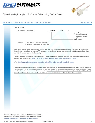 RF Cable Assemblies Technical Data Sheet PE3C4418