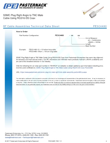 RF Cable Assemblies Technical Data Sheet PE3C4480
