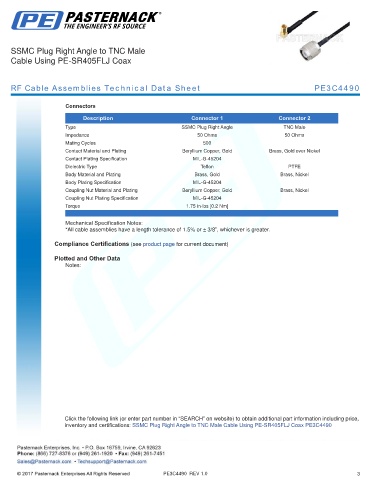 RF Cable Assemblies Technical Data Sheet PE3C4490