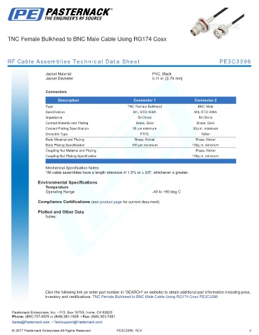 RF Cable Assemblies Technical Data Sheet PE3C3396