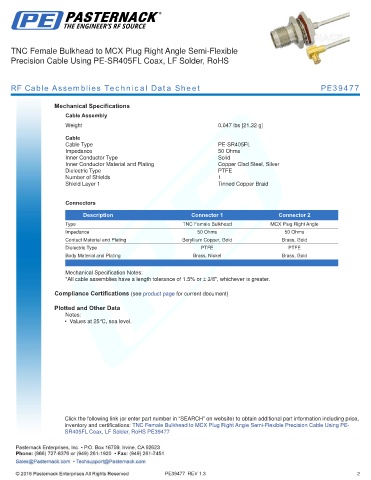 Page 462 - SMB to 95 Ohm 3/4"-20 Twinax RF Cable Assembly Datasheets