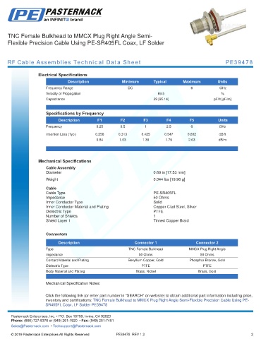 RF Cable Assemblies Technical Data Sheet PE39478