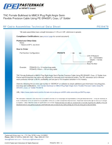 any representation or warranty regarding the suitability of the part described herein for any particular purpose, and Pasternack does not assume any liability arising out of the use of any part or documentation.