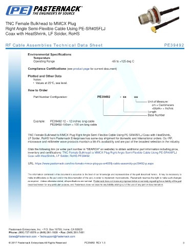 RF Cable Assemblies Technical Data Sheet PE39492