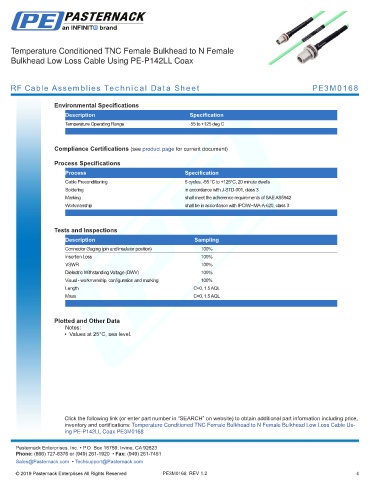 ing PE-P142LL Coax PE3M0168 Pasternack does not make -