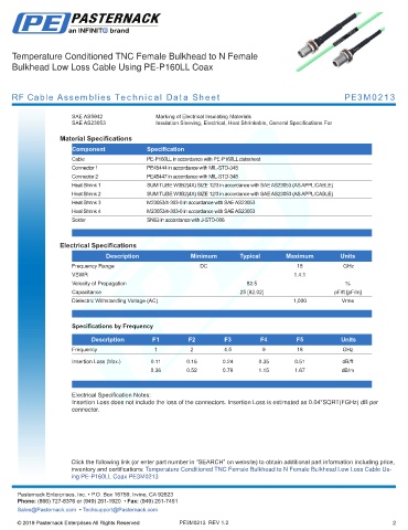 RF Cable Assemblies Technical Data Sheet PE3M0213