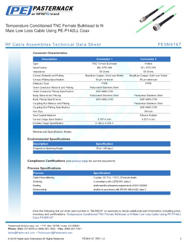 RF Cable Assemblies Technical Data Sheet PE3M0167