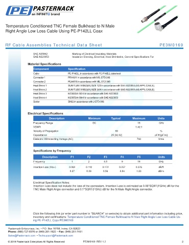 RF Cable Assemblies Technical Data Sheet PE3M0169