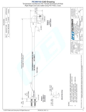 REVISIONS DATE 01/28/19 P1 CONTACT PE44816 N MALE RIGHT ANGLE PART NUMBER PE3M0168