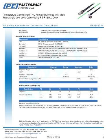 RF Cable Assemblies Technical Data Sheet PE3M0214