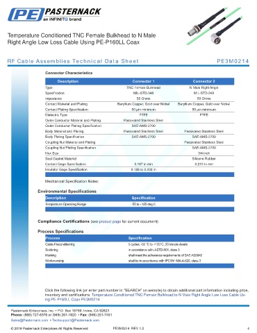 RF Cable Assemblies Technical Data Sheet PE3M0214