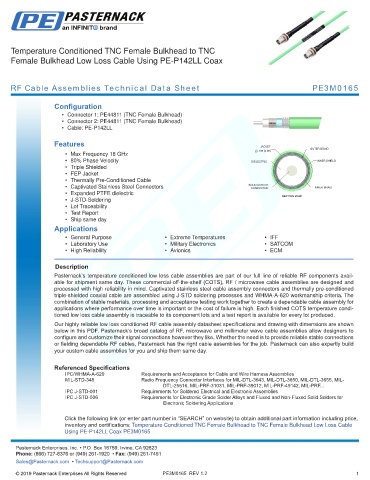 below in this PDF. Pasternack’s broad catalog of RF, microwave and millimeter wave cable assemblies allow designers to