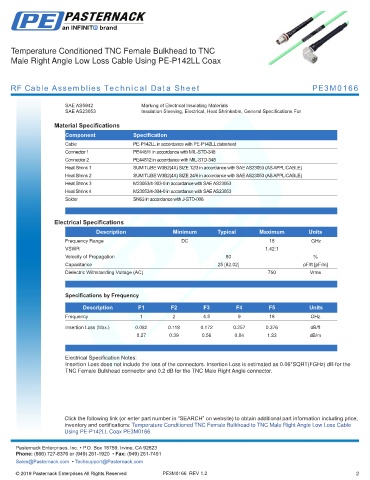 RF Cable Assemblies Technical Data Sheet PE3M0166