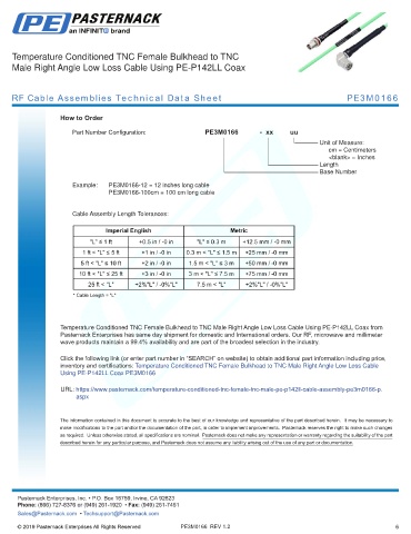 RF Cable Assemblies Technical Data Sheet PE3M0166