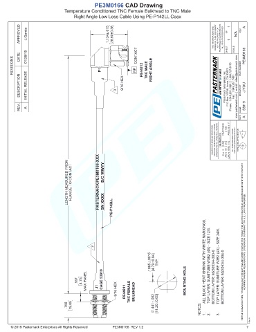 REVISIONS DATE 01/28/19 P1 RP CONTACT PE44812 TNC MALE RIGHT ANGLE PART NUMBER PE3M0166