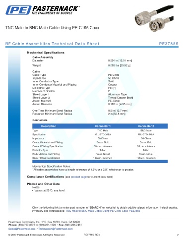 inventory and certifications: TNC Male to BNC Male Cable Using PE-C195 Coax PE37885