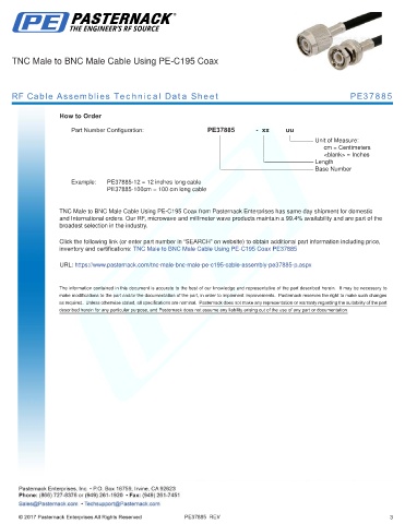 inventory and certifications: TNC Male to BNC Male Cable Using PE-C195 Coax PE37885